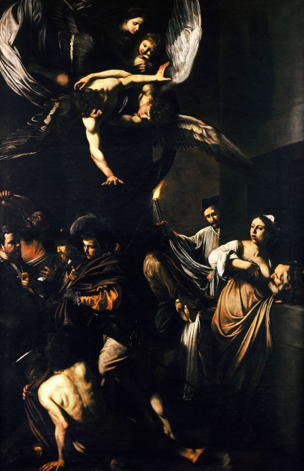 In Caravaggio’s masterpiece, misery becomes hope through the seven works of mercy. The Madonna and Child, escorted by two angels, come down from above on humanity, desperate and in search of help.