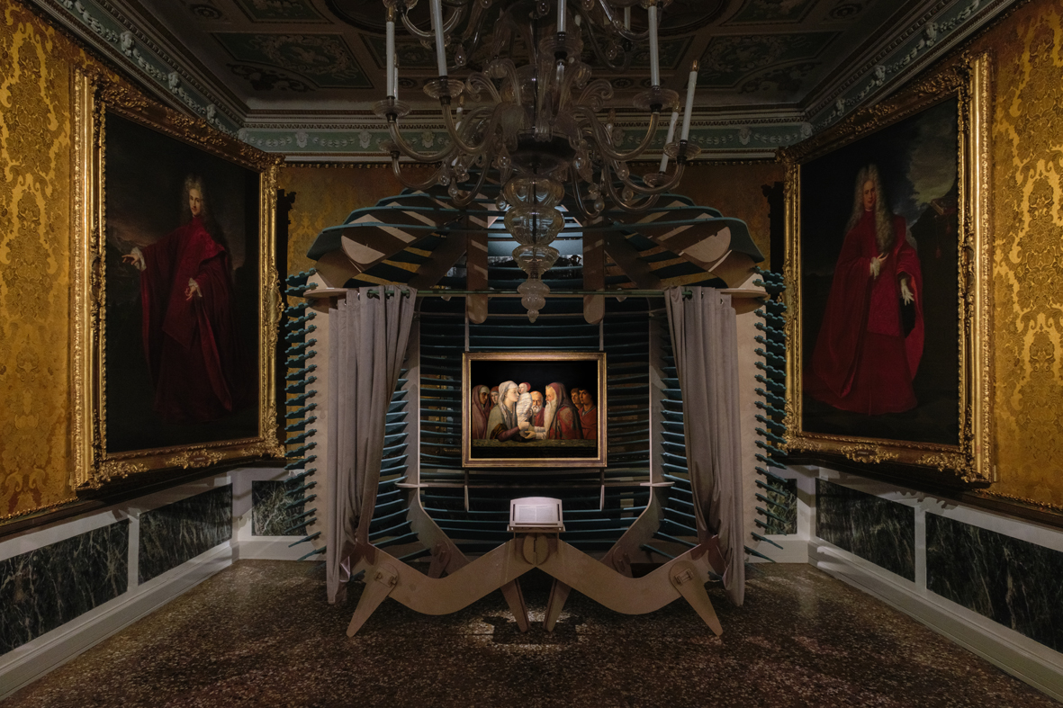 Ad accogliere la Presentazione di Gesù al Tempio è uno spazio completamente trasformato. Non una semplice scenografia, ma una vera e propria architettura, che rimanda alla tradizione delle architetture effimere e sorprendenti che Venezia nei secoli ha realizzato in occasioni solenni, per esaltare il potere dell’immaginazione e celebrare un rito collettivo.