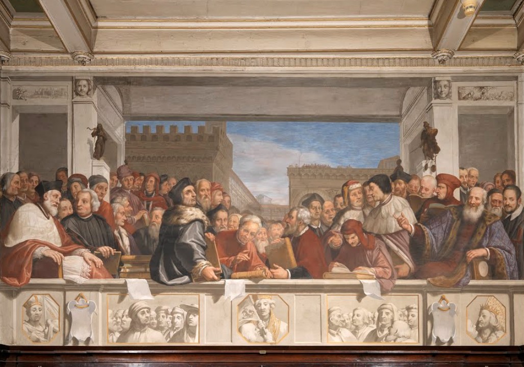 Inside Casa Buonarroti, on the south wall of the library, Matteo Rosselli painted the Humanists, Historians, Legalists, and Orators.