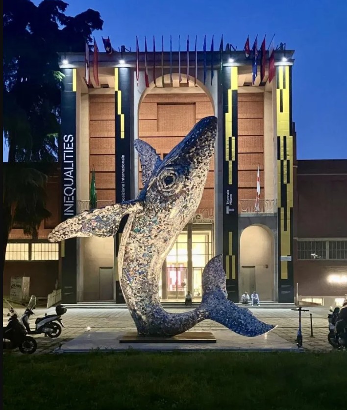 The Whale is one of four installations featuring endangered animals that are part of the collective project “The Fragility of the Future.” Allegrucci was invited to the Triennale by President Boeri after seeing the giant elephant the artist had created the previous year.