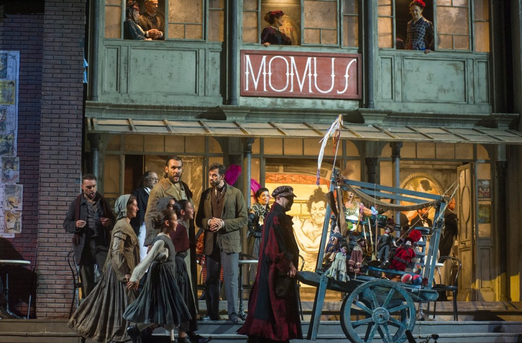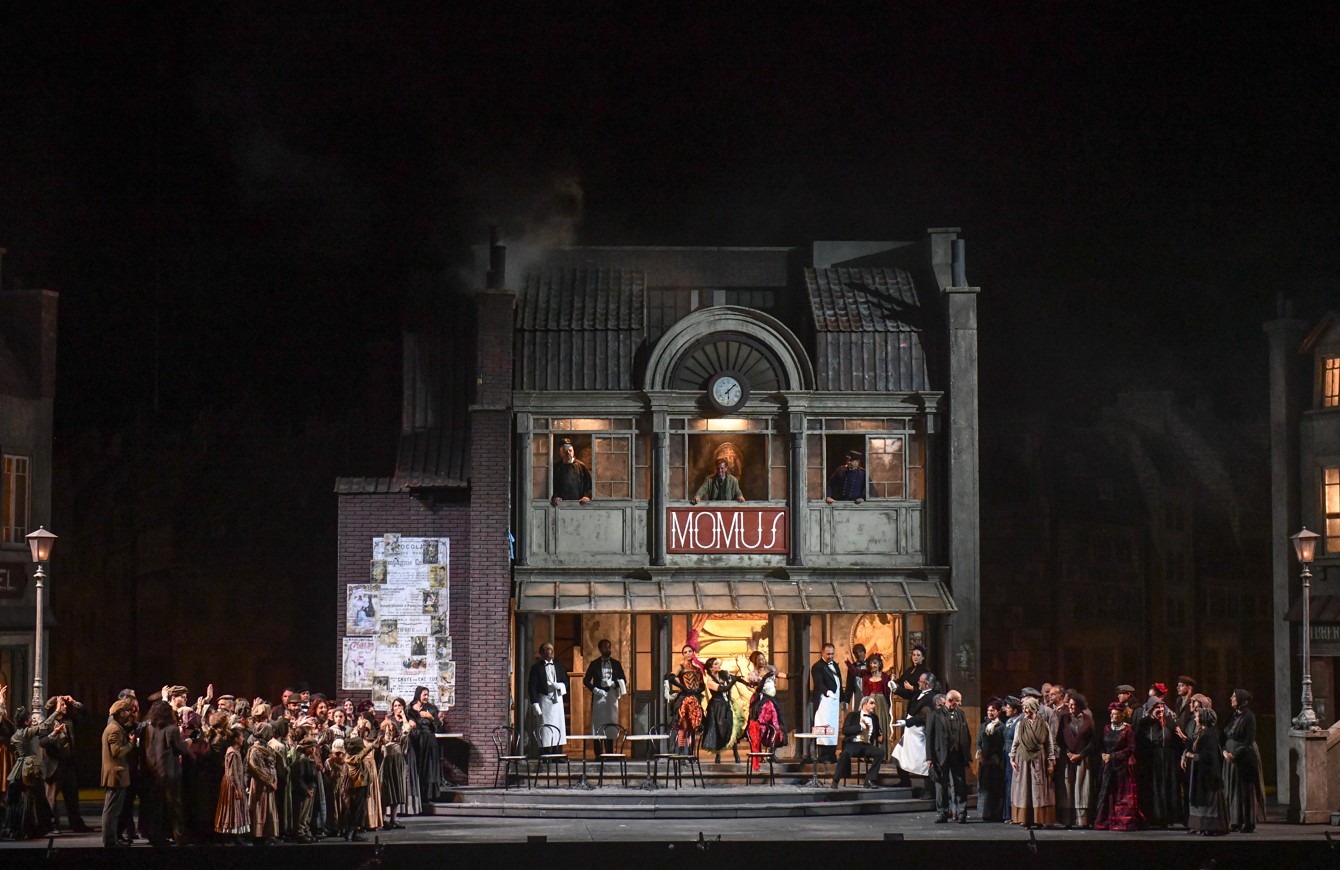 As the lake behind the theater ripples in the breeze, the second act of La Bohème unfolds on stage, with the Caffè Momus providing the backdrop to the joyful atmosphere of Christmas Eve. Puccini’s children’s choir is the group of urchins following the tinkling toy cart.