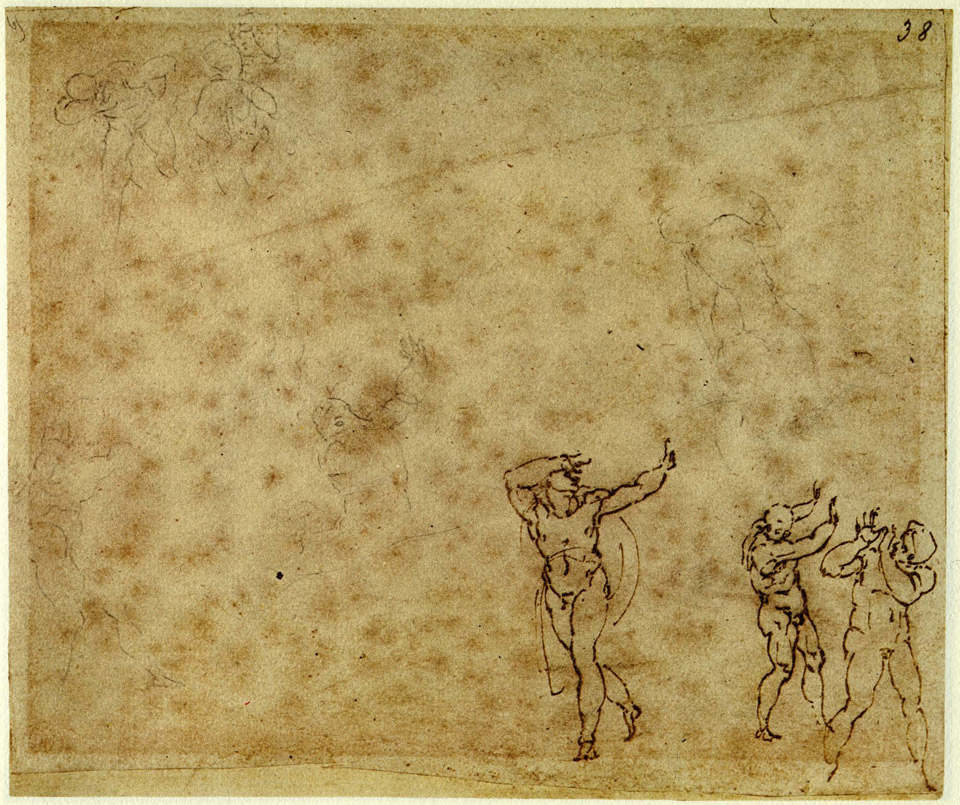 The other drawing is the Study of Three Nudes for a Transfiguration, which I made in pen and brown ink and black pencil.