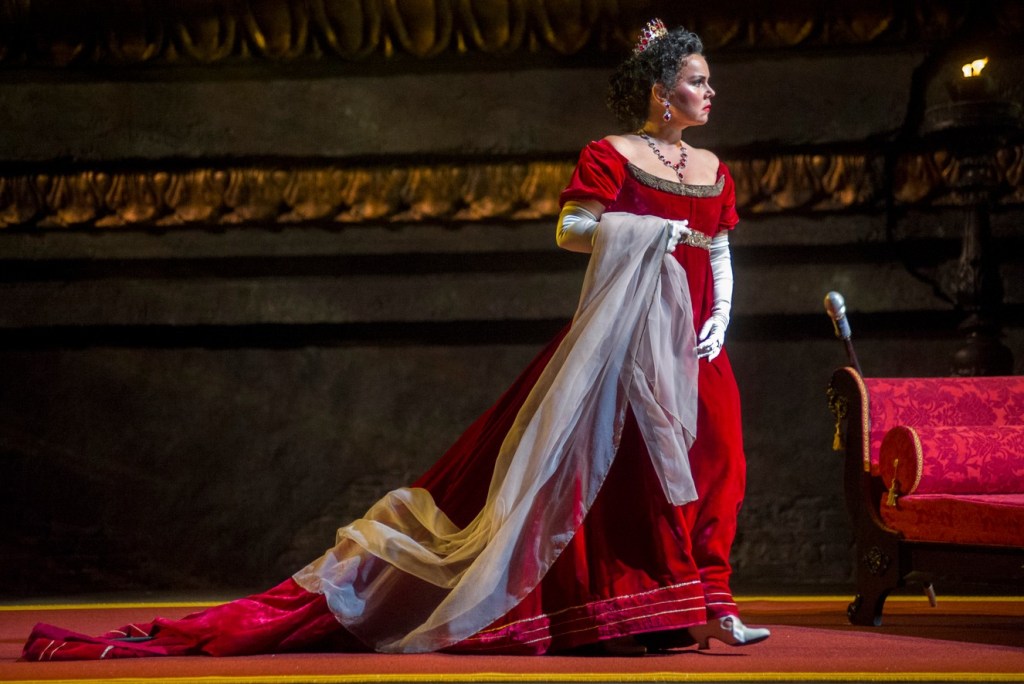Set in the second act, it is a moment of pure beauty that breaks the violence and tension. Passionate and poignant, she addresses her grief to the Creator, asking Him why in her hour of suffering she is rewarded in this way. Buratto blurs the vision of those who listen and watch her with her sorrowful yearning and heartfelt plea. She is stunning, and the applause is all for her as soon as she finishes singing the aria.