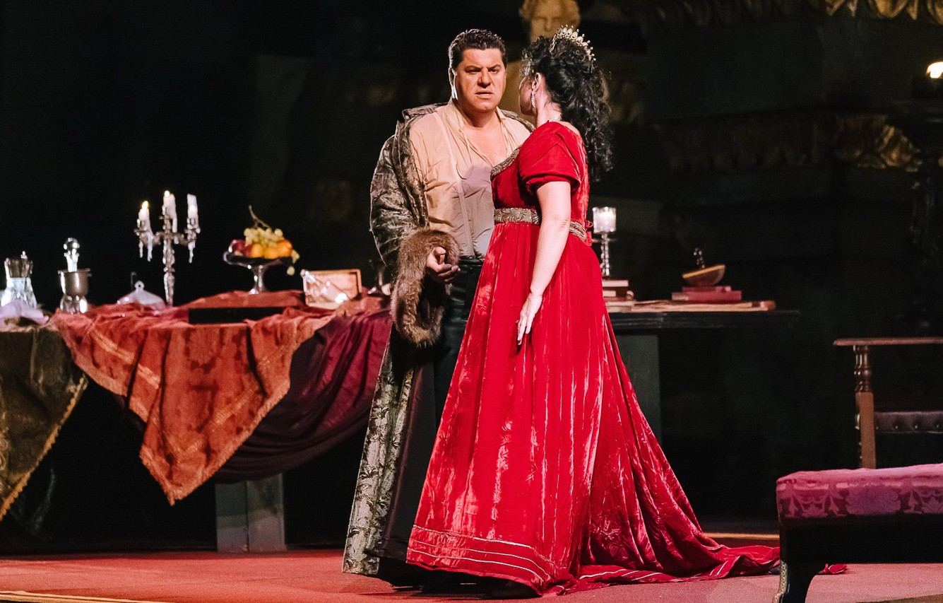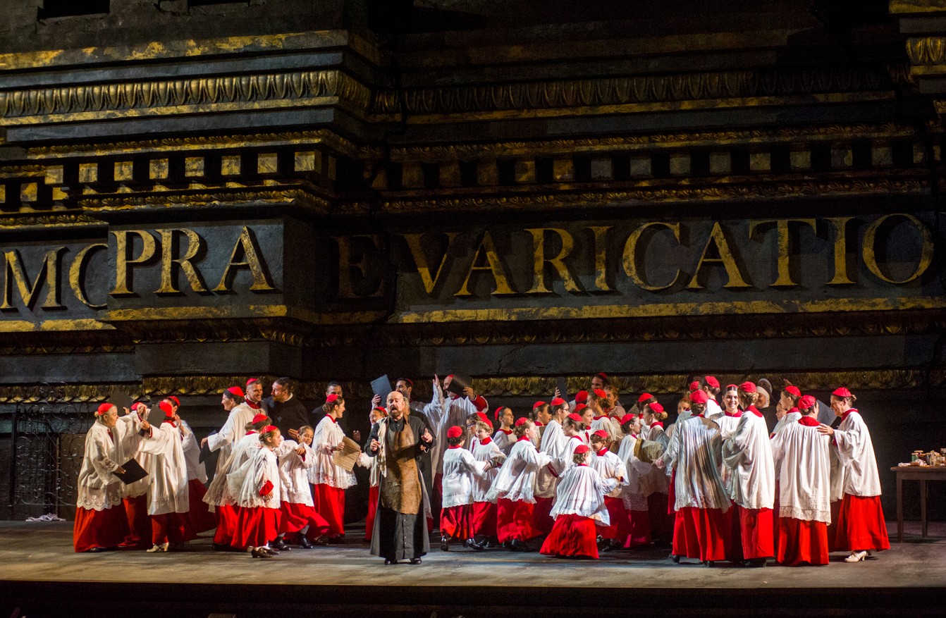 Sentendo le urla dell’amato, Tosca cede e rivela che si è nascosto in un pozzo del giardino della villa di Cavaradossi. Scarpia, interpretato da un intenso e crudele Mikolaj Zalasinki, condanna a morte il pittore ma offre a Tosca la possibilità di salvarlo: la vita di Mario per le sue grazie.