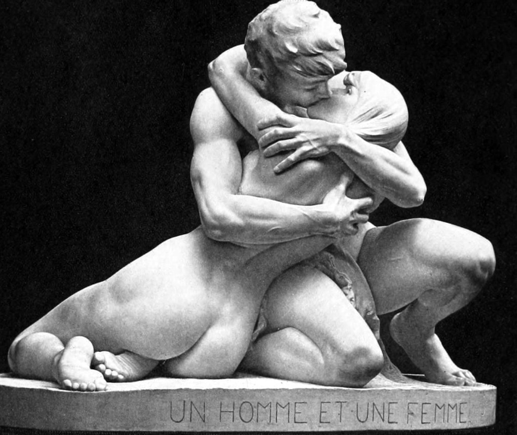 Today’s sculpture by artist Stephan Sinding depicts a man and a woman locked in a tight embrace.