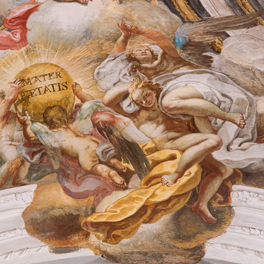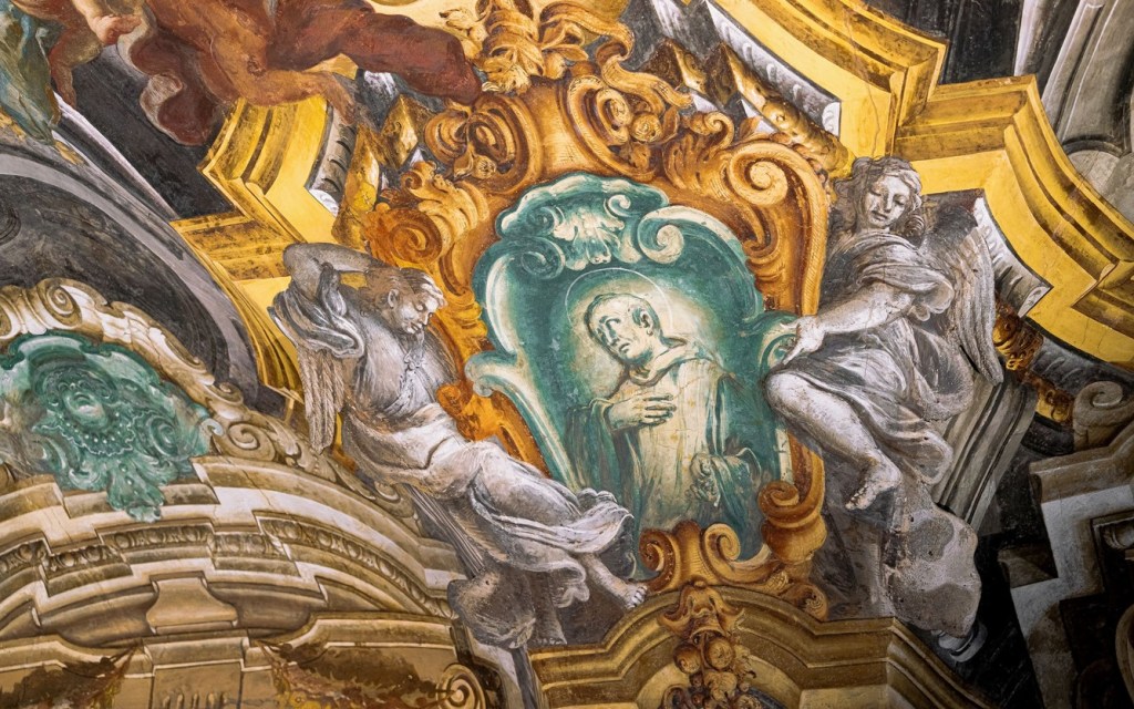 Raising your eyes, however, you’ll be astonished by the frescoed vault by Francesco Maria Russo.