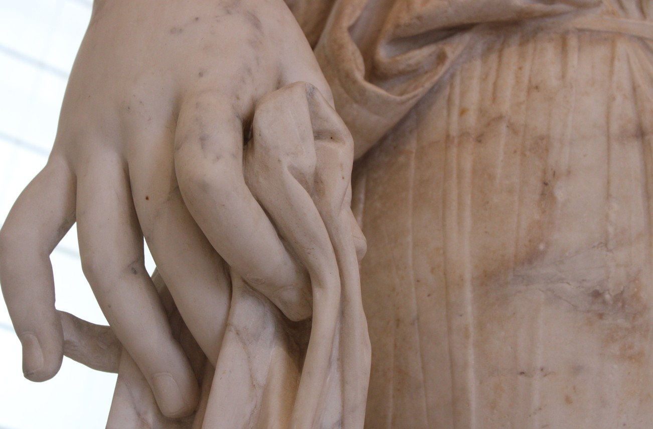La mano che sorregge il mazzolino di fiori però non è nemmeno più quella cinquecentesca realizzata da Dalla Porta ma venne rifatta nello studio di Albacini nell’Ottocento. Per quanto riguarda la testa, all’Albacini fu portata una con tanto di diadema nel 1786 che poteva essere adattata all’opera.