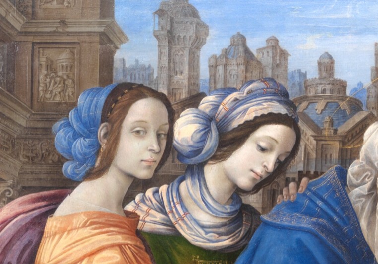 The painting of the day I want to feature is Filippino Lippi’s masterpiece from 1497, depicting the Meeting of Joachim and Anna outside the Golden Gate of Jerusalem.