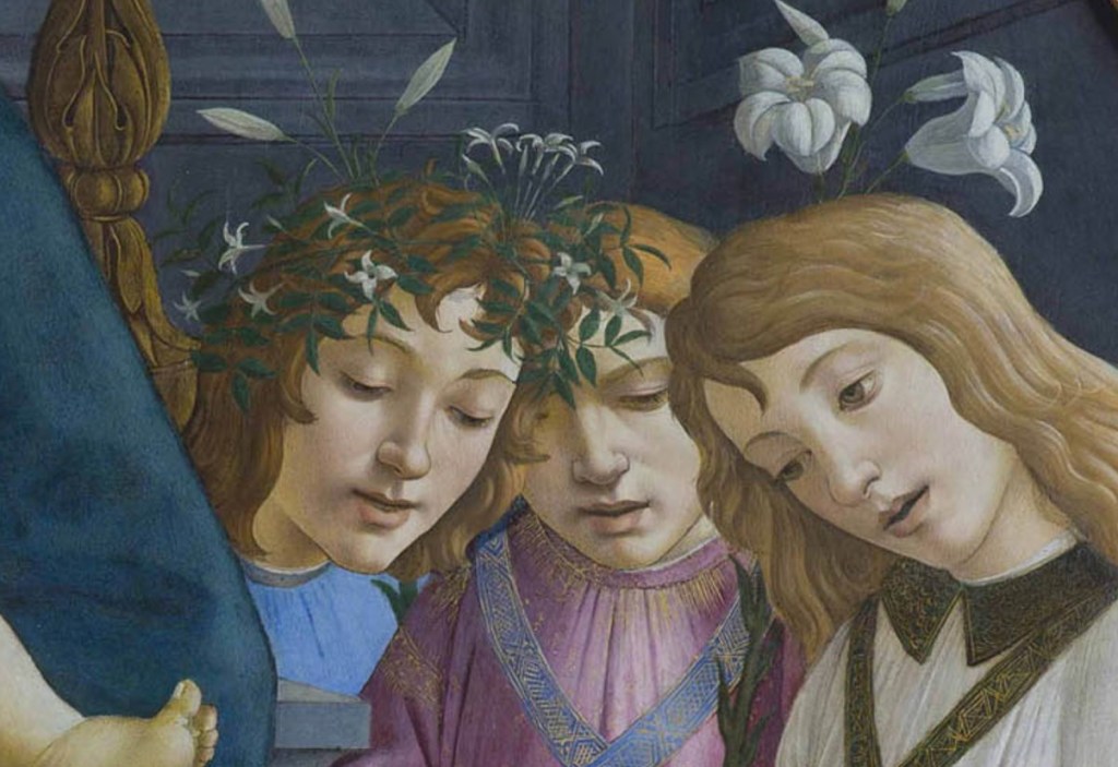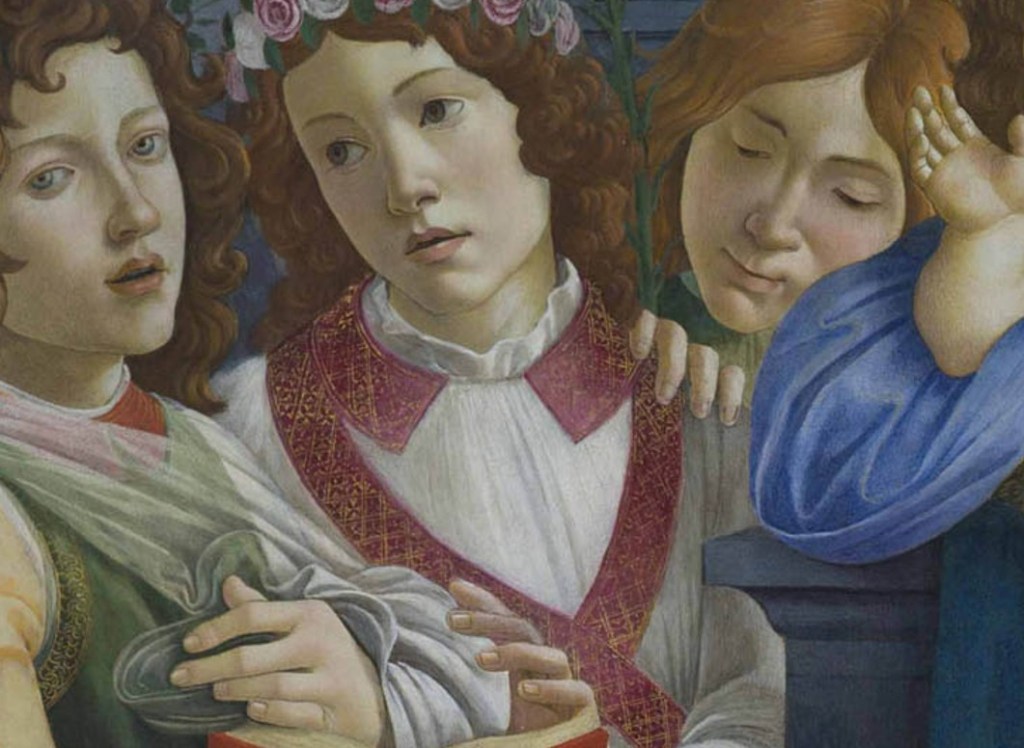 Probably painted for private devotion in egg tempera on wood, the work is rightly considered one of the masterpieces of fifteenth-century Florence. Previous inventories erroneously attributed it to Ghirlandaio, but more recent studies have identified it as a work by Botticelli and his workshop, with interventions carried out directly by the master himself.