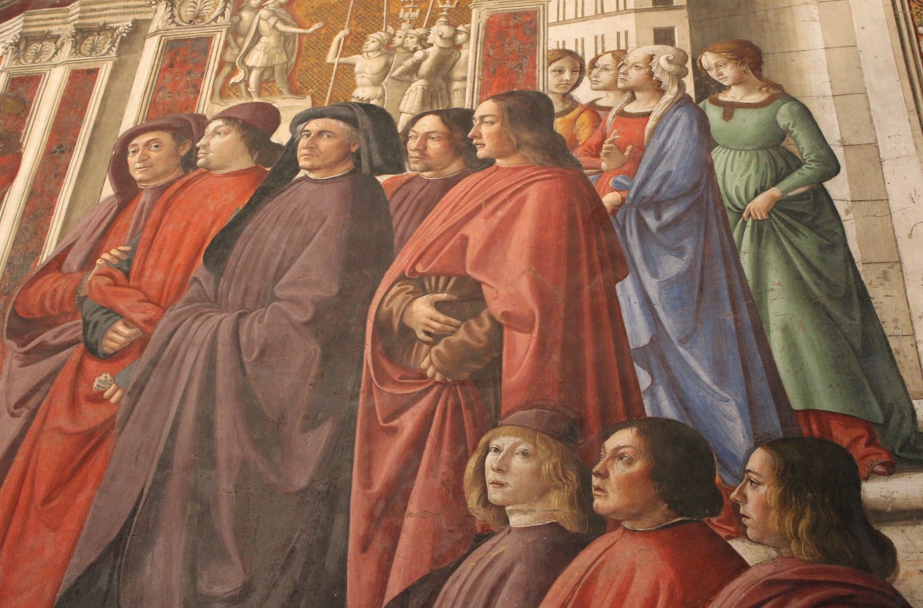 Gli affreschi sono popolati di ritratti dei personaggi contemporanei più in vista, a partire dai membri della famiglia Tornabuoni e i loro conoscenti. Di fatto questi affreschi sono un vero e proprio spaccato della società del tempo e mostrano usi e costumi dell’epoca, architetture e usanze.