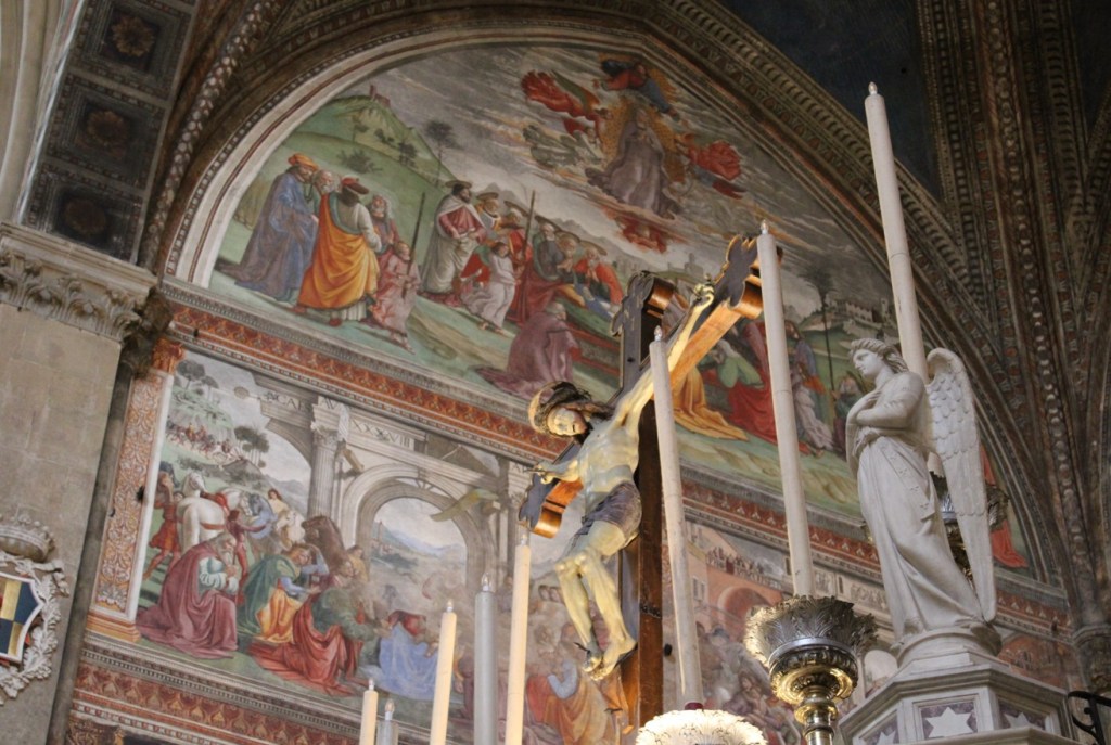The decoration of the chapel immediately proved to be an extremely ambitious project, and Ghirlandaio, already well-known for his frescoes in the Sassetti Chapel in Santa Trinita, would exceed the client’s expectations.