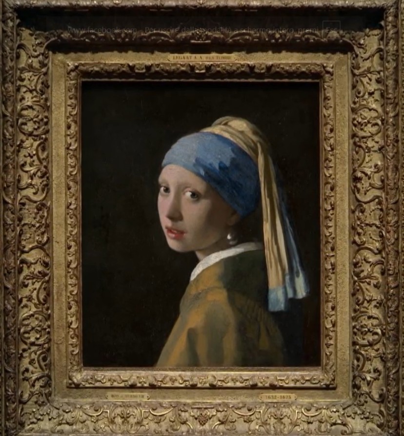 Osservate con attenzione l’equilibrio dei colori: quell’ocra accostata al blu e al rosa del volto della giovane. Nessuna pennellata è stata fatto a caso e sembra che Vermeer abbia voluto porre l’accento non tanto sull’orecchino ma sulla bocca leggermente aperta.