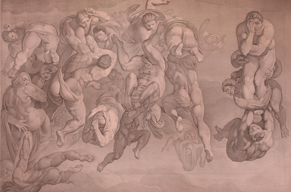 Le matrici in rame per le acqueforti di Tommaso Piroli, di Conrad Martin Metz e di Giovanni Volpato, realizzate tra la fine del Settecento e i primi dell’Ottocento, traducono su carta le grandi figure della Volta e del Giudizio Universale, operando una selezione critica che propone nuove visioni e forme narrative diverse.
