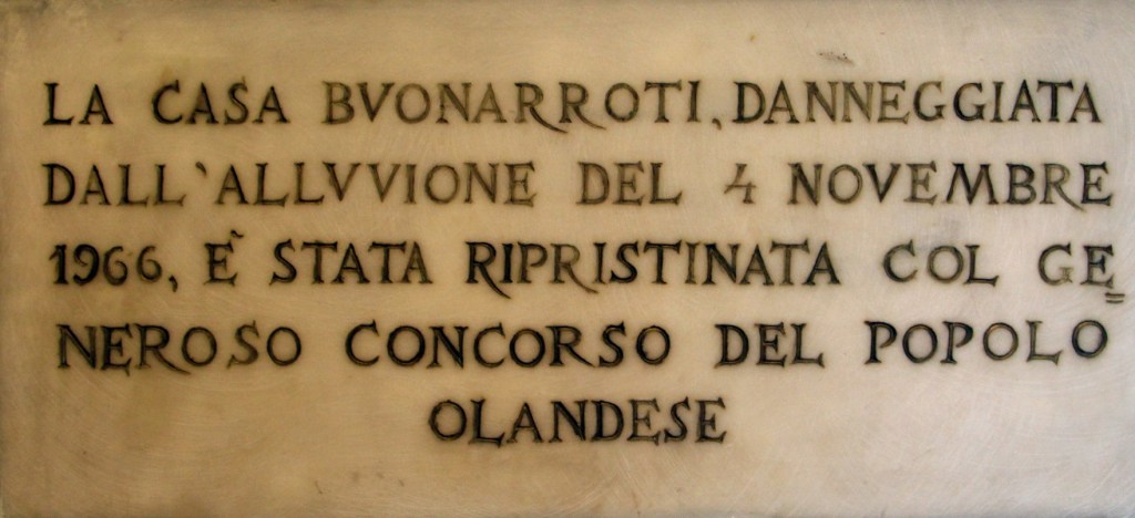 Il 4 novembre 1966 tutta Firenze fu inondata dal devastante alluvione. Venne colpito in modo particolare il quartiere di Santa Croce e anche Casa Buonarroti non si salvò dall’impeto delle acque piene di detriti e fango.