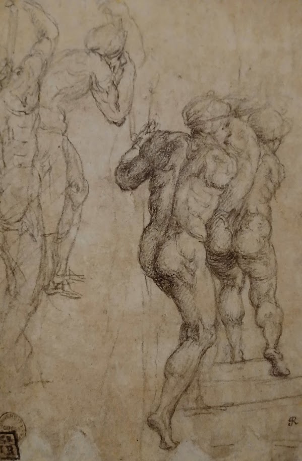 The nails and loincloth are later additions and certainly not by me, so much so that in a drawing prior to Lelio Orsi’s censorship, their absence is clearly visible.