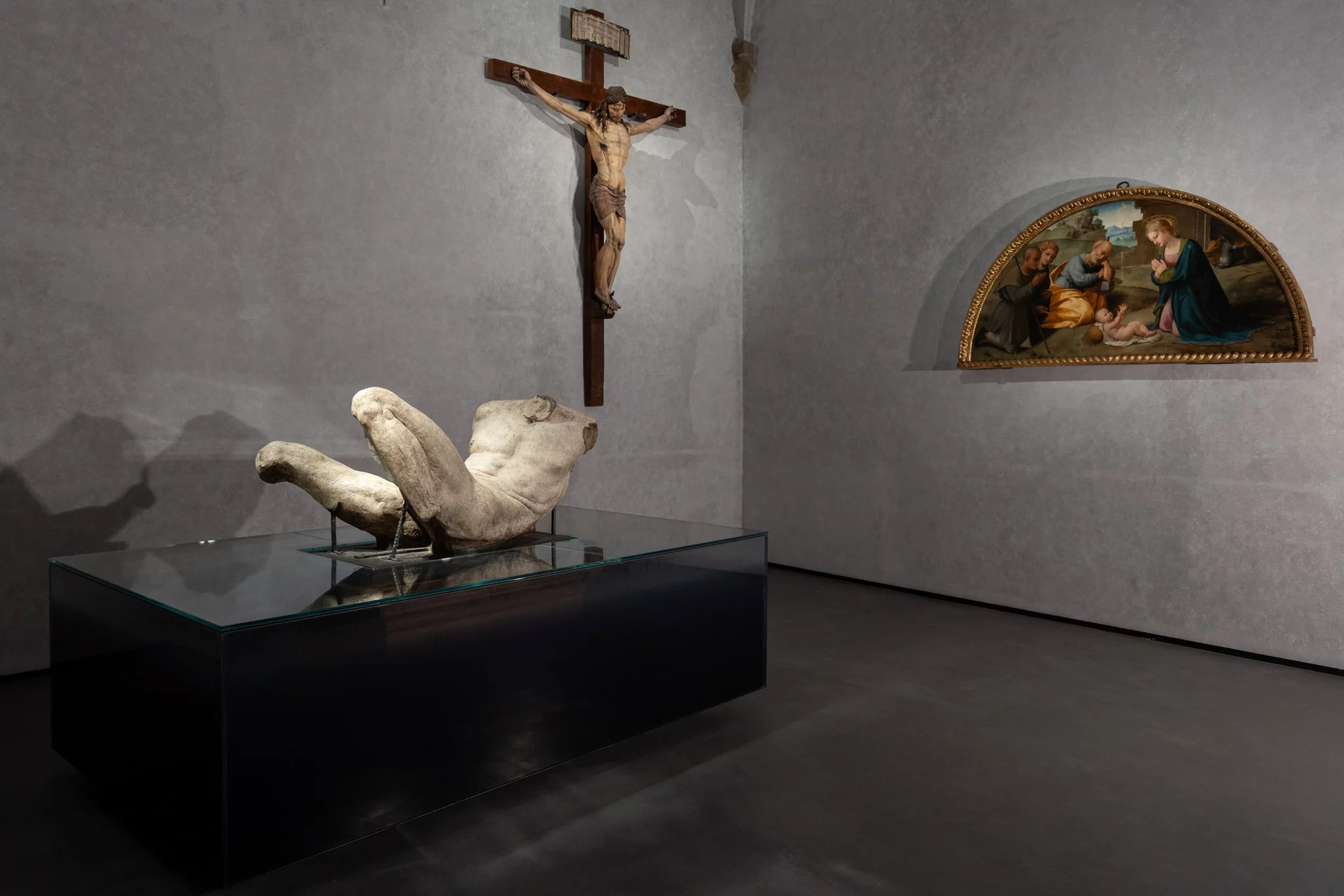 In the new room, the River God is not alone; there is also a lunette created by my youthful friend Francesco Granacci and a wooden Crucifix from the Sangallo workshop. These works arrived at the Academy of Drawing and Arts in the early 19th century.