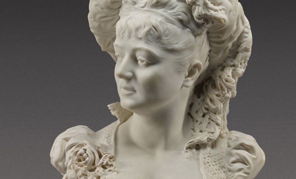 Realizzò diverse opere in marmo come Ofelia, Hermione e il Busto di Donna del quale voglio parlarvi oggi. La Bernhardt ebbe modo di cominciare la sua attività artistica all’inizio del 1870 sotto l’attenta guida di Roland Mathieu-Meusnier e Jules Franceschi.