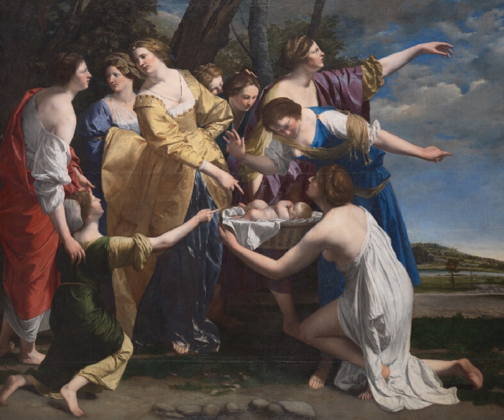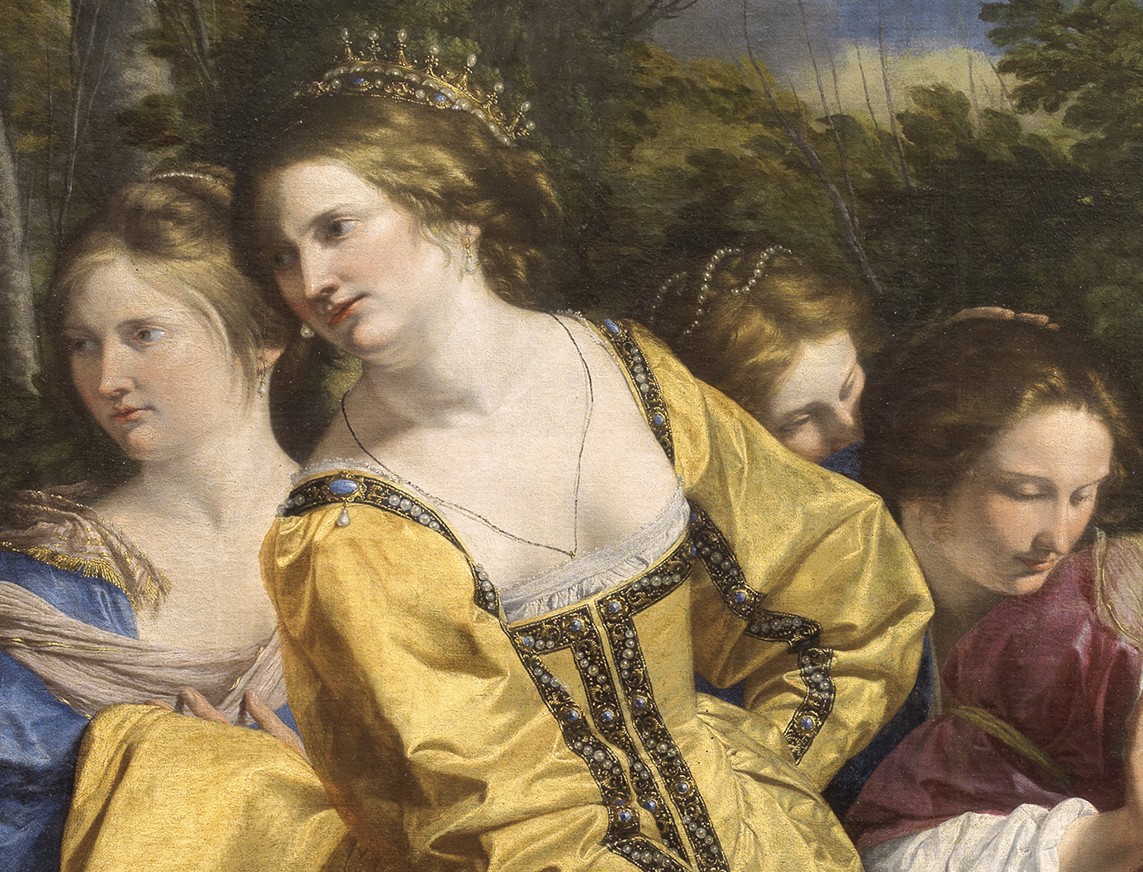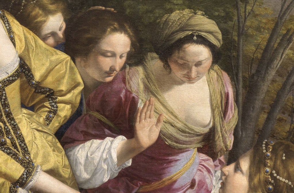 Mosè salvato dalle Acque: tessuti, gioielli e gestualità di Orazio Gentileschi