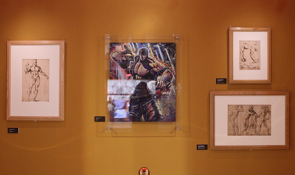 Tetsuo Hara’s Kenshiro was accompanied by three drawings by Baccio Bandinelli and his school from the Cabinet of Prints and Drawings of the Uffizi: Male Figure, Studies of Arms, and Three Male Figures.