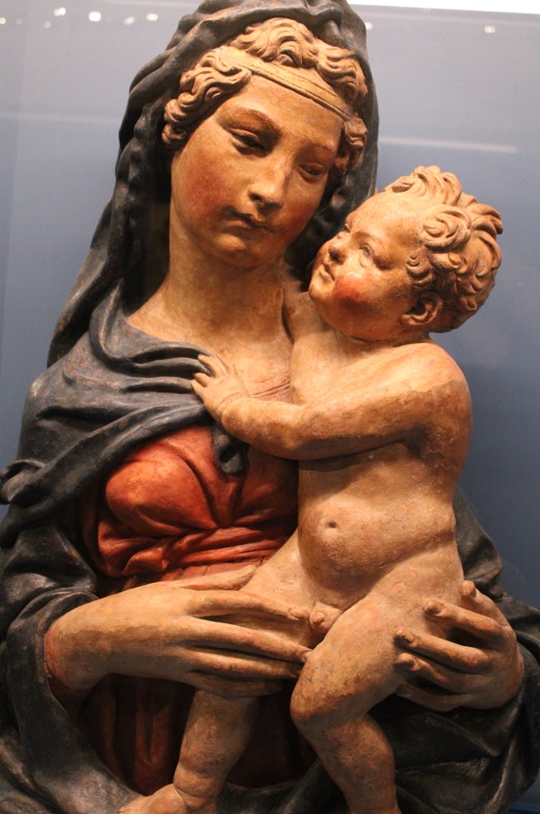 What I particularly love about this work is the tenderness it conveys to the viewer and the human warmth that the terracotta conveys without uttering a word. The exchange of glances between the Madonna and her Son and that tangible symbiosis are pure poetry in my eyes.
