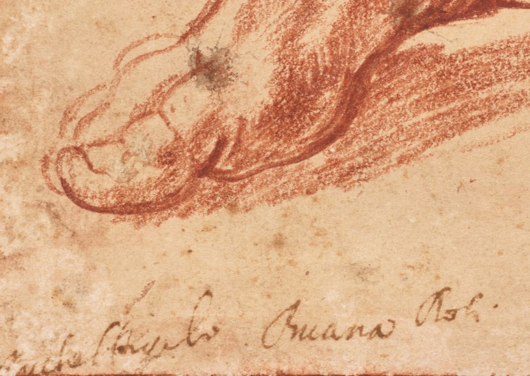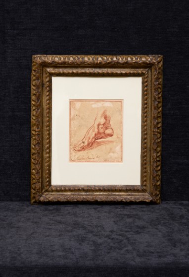Quello che è certo è il vigore del piede disegnato, con la tensione percettibile del tallone sollevato. Sul disegno sono evidenti correzioni e linee rafforzate per correggere lievemente la postura. Sul foglio che misura 13,5 x 11,5 centimetri, al di sotto del disegno, è riportata l’iscrizione ‘Michelangelo Bona Roti’.