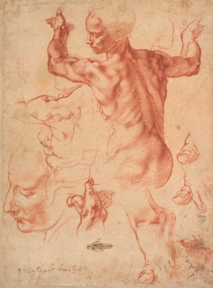 I disegni di Michelangelo – come sottolinea la storica dell’arte Carmen Bambach – permettono di scrutare “alle spalle del genio”, annullando secoli di distanza. Guardando questo studio sembra quasi di percepire la forza fisica con cui il maestro incideva la sanguigna sulla carta, la tensione del gesto che precede l’affresco”.