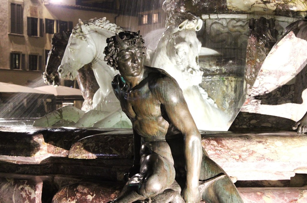 The monumental Carrara marble Neptune sculpted by Ammannati, better known to Florentines as “il Biancone,” bears the face of Cosimo I. To legitimize his power, the Grand Duke sought to appropriate the image of the deity, simultaneously immortalizing his face, immortalizing it forever in a work to be placed in Piazza della Signoria.