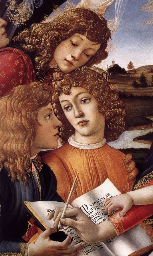 Sandro Botticelli’s angels are among the most recognizable and beloved of the Florentine Renaissance. In the Madonna of the Magnificat, now in the Uffizi Gallery, the angels surrounding the Virgin are striking for their ideal beauty and the subtle melancholy that pervades their faces.