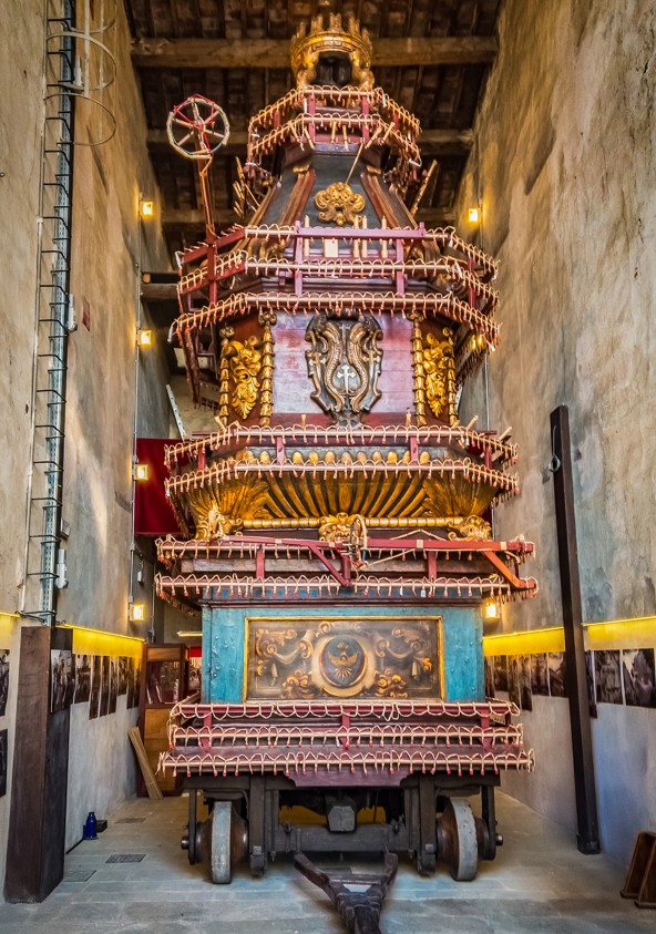 The extraordinary opening of the Brindellone represents an event of great cultural significance. The majestic chariot, kept throughout the year in the municipal depot on Via il Prato, is shown to the public only on rare occasions, outside of the traditional Easter ceremony.