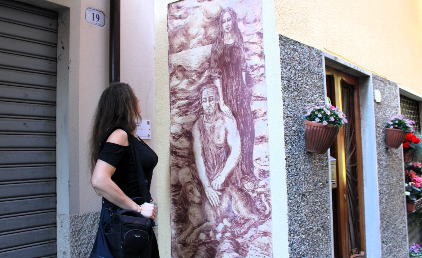 Alcuni sgraffiti si mostrano immediatamente allo sguardo, altri si scoprono solo alzando gli occhi o tornando sui propri passi. Il borgo invita all’osservazione, al silenzio, a un rapporto diretto con l’arte che nasce dal contesto e non potrebbe esistere altrove.