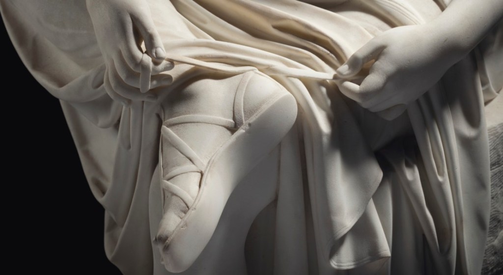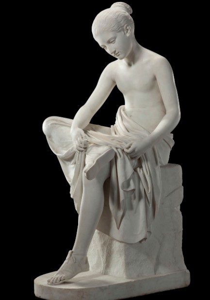 Among the most intense and silent images of European neoclassical sculpture, Rudolph Schadow’s Woman Tying Her Sandals occupies a place of absolute prominence. Often referred to in the past with the inappropriate title of Sandal Tyer, the work actually depicts a young woman captured in an intimate and private moment, absorbed in the simple act of tying her sandal.