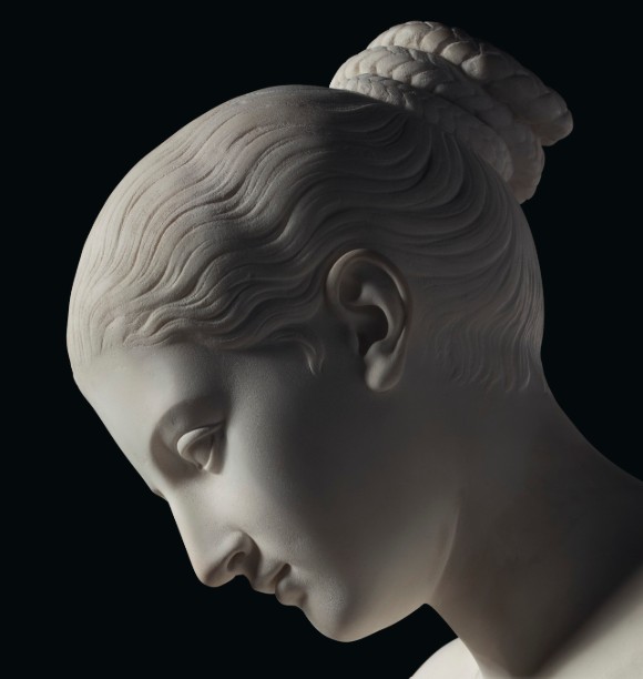 Lontana dai clamori del mito e dalla retorica eroica, la figura femminile si presenta composta, concentrata, immersa in un tempo sospeso. La freddezza apparente del neoclassicismo nordico si trasforma qui in una forma di delicatezza trattenuta, capace di coinvolgere lo spettatore proprio grazie alla sua discrezione.