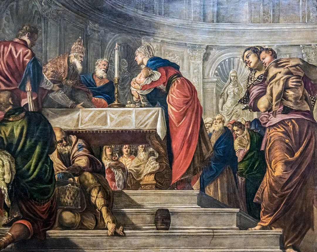 In the 16th century, artists such as Lorenzo Lotto and Tintoretto amplified the dynamism of the scene. The architecture became complex, the gestures more theatrical, the lighting more dramatic. The Presentation at the Temple was no longer simply a ritual, but an event that engaged the space and the viewer.