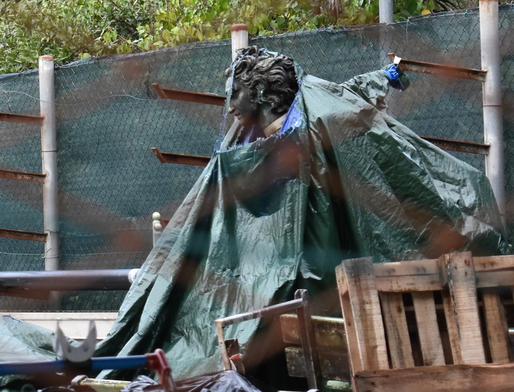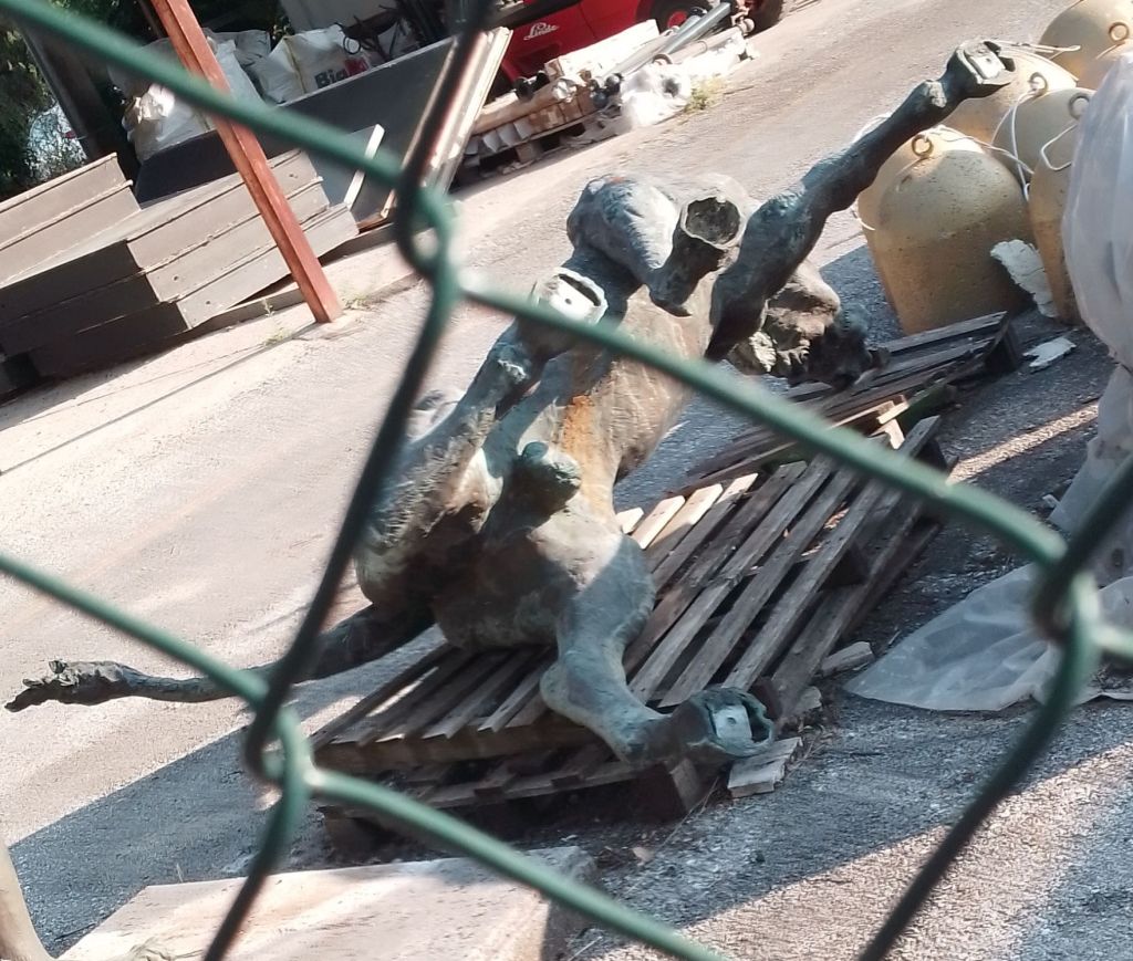 La sua celebre scultura in bronzo, “La campagna va al mercato”, realizzata nel 1968, oggi giace nascosta sotto un telone verde in un deposito comunale, lontana dagli occhi di cittadini e turisti.