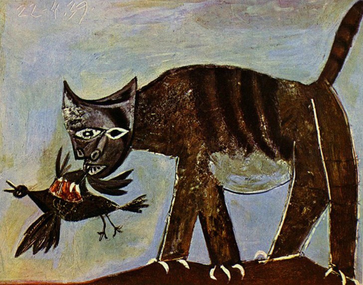 Nel Novecento il gatto entra anche nell’immaginario delle avanguardie. Pablo Picasso lo raffigura in diverse occasioni, talvolta con tratti giocosi, talvolta con accenti più aggressivi. In alcune tele il felino appare accanto a bambini o donne, in altre assume un ruolo quasi simbolico.
