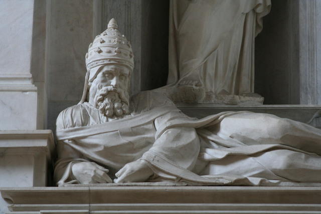 The first one came out badly, and the second one was only half-successful. The bronze seemed to rebel against the desire to be molded into the likeness of a warrior pope. Months of polishing, of toil, of barely contained and sometimes unleashed rage followed.