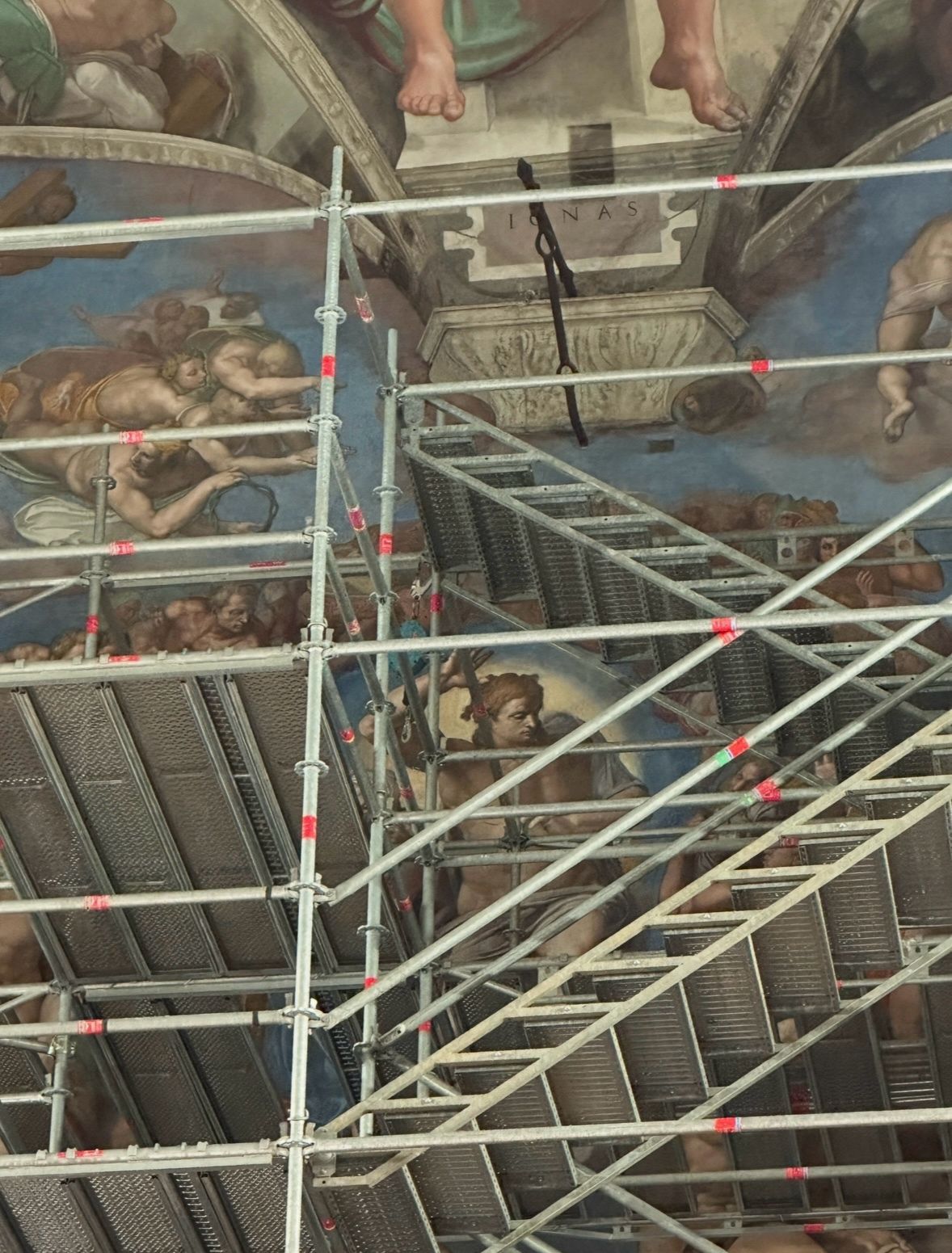 I mundator dei Musei Vaticani a voi contemporanei sono al lavoro sul mio Giudizio Universale per rimuovere quella patina biancasta che s’è venuta a creare nel corso degli ultimi anni.