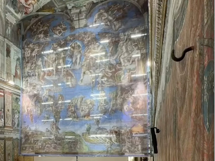 The ongoing treatment, performed with distilled water and Japanese paper, will allow us to rediscover the brilliance of the colors I imagined between 1536 and 1541, without interrupting the visits of the faithful and tourists to the Sistine Chapel.