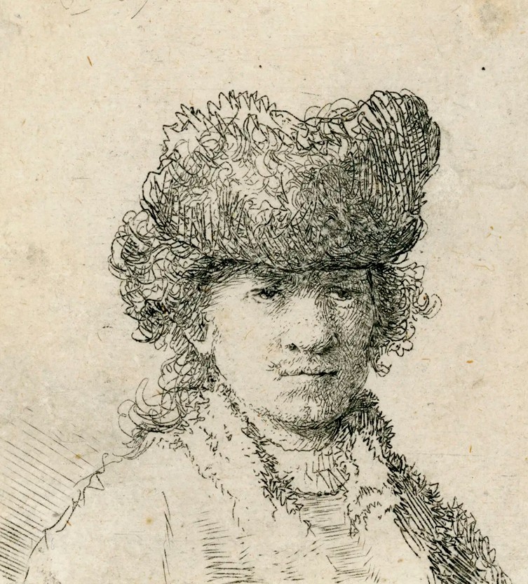 Opere come l’“Autoritratto con berretto di pelliccia” del 1630 dimostrano come il maestro olandese sapesse trasformare il segno inciso in un mezzo capace di straordinaria intensità psicologica.
