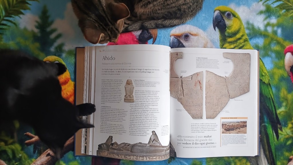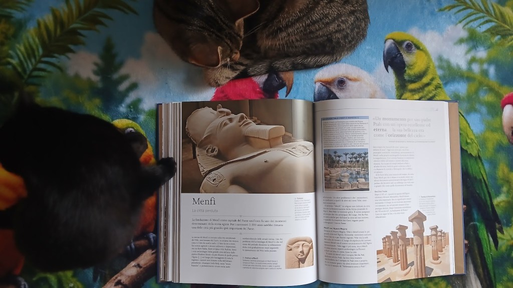 I miei mici, Pamela e Mariano, devono aver saputo che i gatti erano venerati nell’antico Egitto e son voluti comparire anche loro nelle foto.