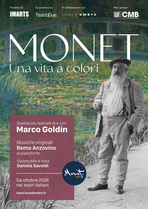 Nel 2026 ricorreranno i cento anni dalla scomparsa di Claude Monet, il maestro che ha cambiato per sempre il modo di guardare la luce, il colore e il paesaggio. Per celebrare questa ricorrenza nasce “Monet. Una vita a colori”, il nuovo spettacolo teatrale ideato e diretto da Marco Goldin, che porterà nei teatri italiani un racconto immersivo dedicato alla vita e all’opera del padre dell’Impressionismo.