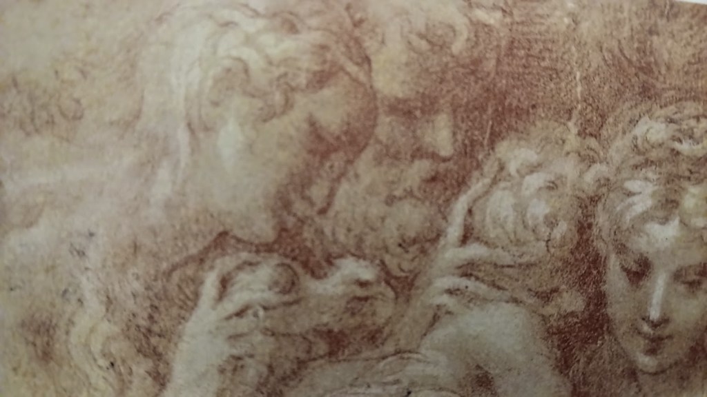 Questo confronto suggerisce che il foglio possa appartenere alla fase giovanile dell’artista, quando il suo stile era ancora influenzato dal grande maestro emiliano Antonio Allegri da Correggio.