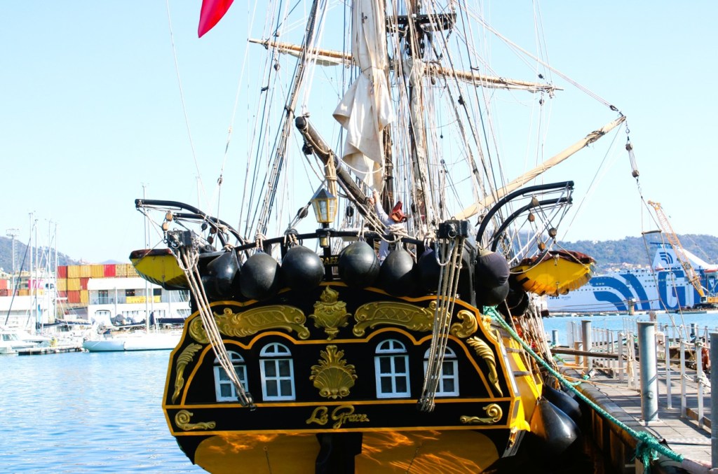 The hull of the Danish Phoenix, a former cargo ship transformed into a movie star, bathes in the same waters, surprising with its elegance and versatility. A little further away, the caravel Vera Cruz harks back to the iconic forms of the 15th century, while the brigantine La Grace evokes the golden age of 18th-century navigation.