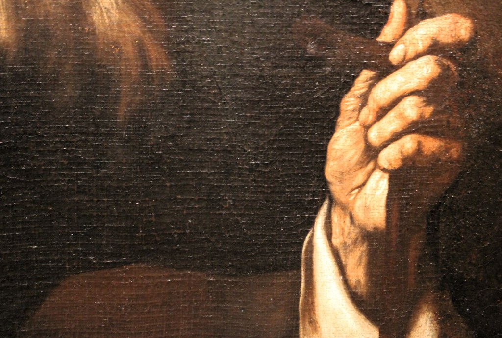 Ribera neither idealizes nor softens. His Saint Anthony is marked by time: the furrowed brow, the bristly eyebrows, the unkempt beard, the withered and dirty skin of the hand. Every wrinkle tells a story, every imperfection becomes truth.
