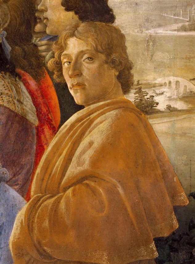 The Self-Portrait in Sandro Botticelli’s Adoration of the Magi also plays on this mechanism. Among the many characters in the scene, Botticelli depicts himself looking directly at the viewer. It is a subtle yet revolutionary gesture: the artist removes himself from the sacred narrative to create a direct connection with the viewer.