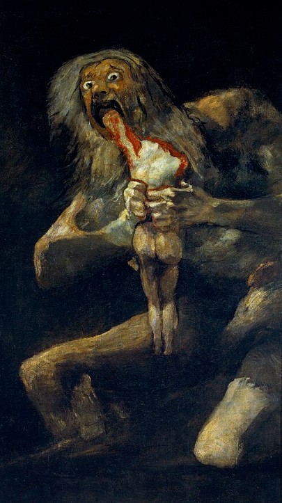 Realizzato direttamente sulle pareti della sua casa, fa parte delle celebri “Pitture nere”. L’opera rappresenta il dio Saturno mentre divora uno dei suoi figli, in una scena cruda e quasi animalesca.