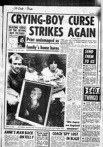 La leggenda esplose quando diversi incendi domestici distrussero abitazioni ma i quadri del bambino in lacrime vennero ritrovati intatti tra le macerie.