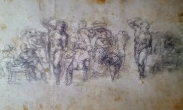 Il disegno che vi propongo è lo studio eseguito per il panneggio che copre le gambe della Sibilla Eritrea, datato fra il 1508 e il 1512.