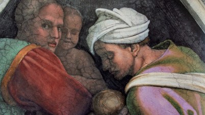 Nella vela della Sistina che si trova immediatamente sopra la lunetta di Ozias, raffigurai un gruppo familiare formato da tre personaggi.