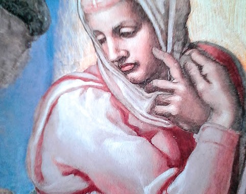 La Vergine del Giudizio Universale Sta lì tutta rannicchiata alla destra del Figlio avvolta in una veste rosa e con parte del mantello azzurro che le copre le gambe. Michelangelo Buonarroti 22 ottobre 2016 Lascia un commento